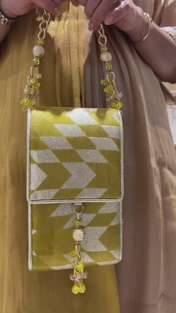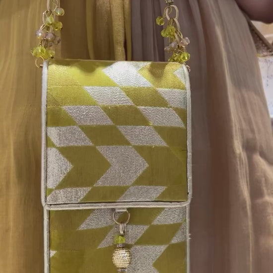 Banarasi Ikat Yellow Mobile Bag