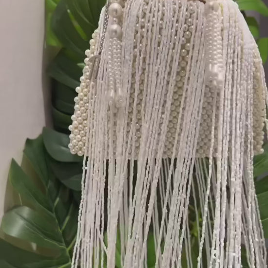 - Embroidery: Intricate Hand-Applied White Beads & Fluid Seed Bead Tassels